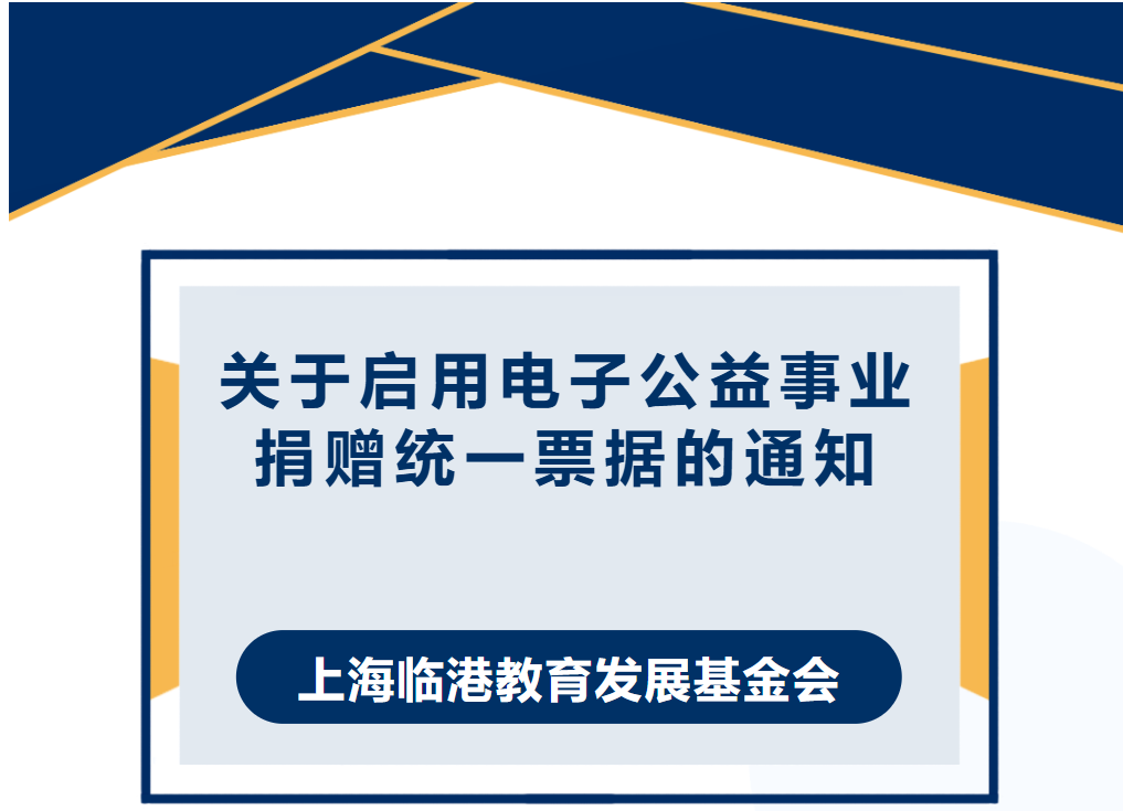 为规范公益事业捐赠票据使用和管理行为,加强公益事业捐赠收入财务监督管理,促进社会公益事业发展,根据财政部和税务总局全面推进电子票据管理改革的要求,上海临港教育发展基金会于2025年3月17日正式启用电子公益事业捐赠统一票据,不再使用纸质公益事业捐赠统一票据。